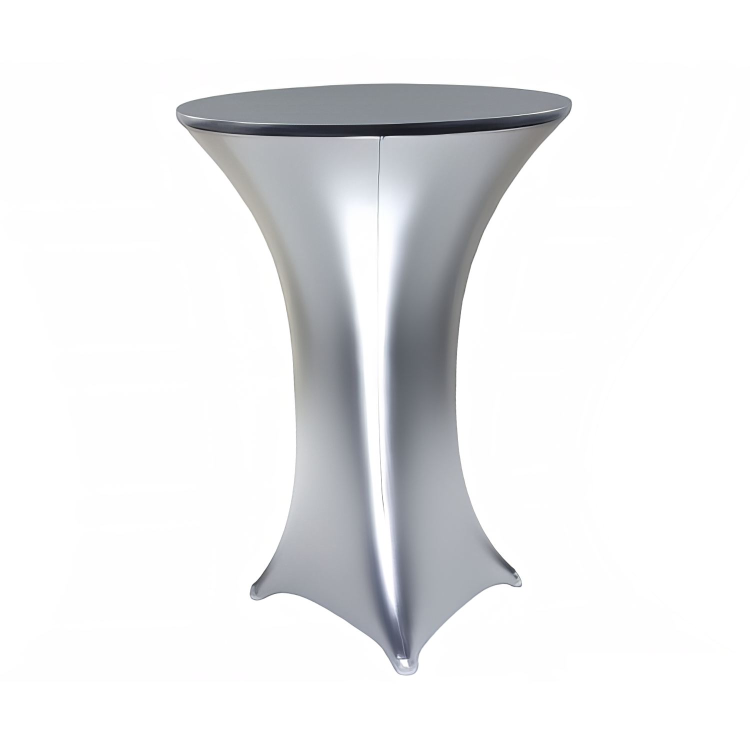 Each spandex tablecloth features leg pockets that secure it in place, ensuring a sleek silhouette. For added color and dimension, we also offer spandex table caps, which fit snugly over the tabletop with elastic for a stylish contrast.